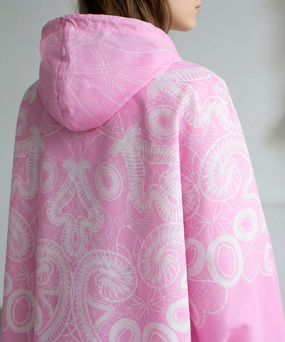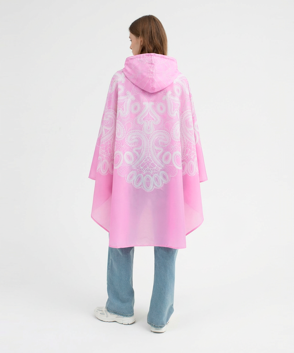 Дождевик-плащ на кнопках, розовый «Кружево», универсальный.