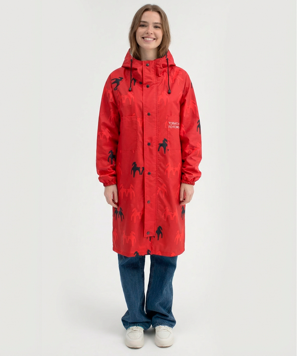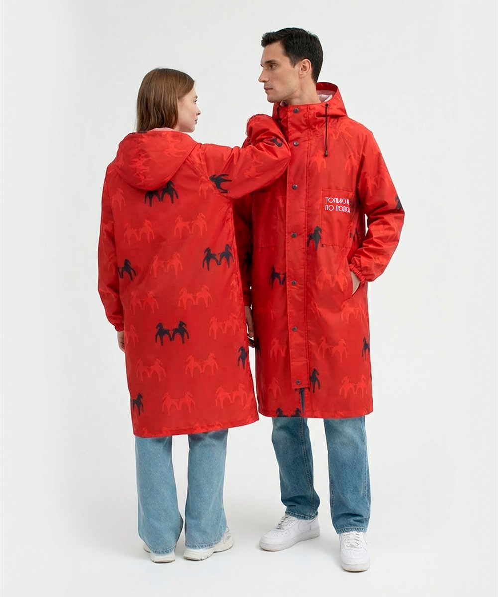 Дождевик-плащ на кнопках, красный «Конь-Огонь», универсальный.