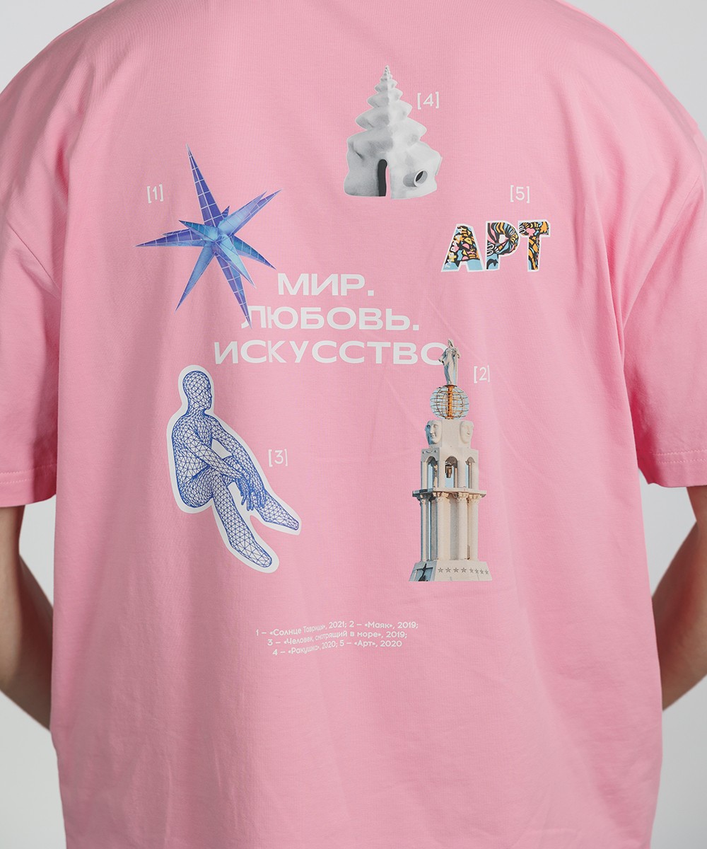 Футболка «МИР.ЛЮБОВЬ.ИСКУССТВО», розовая.
