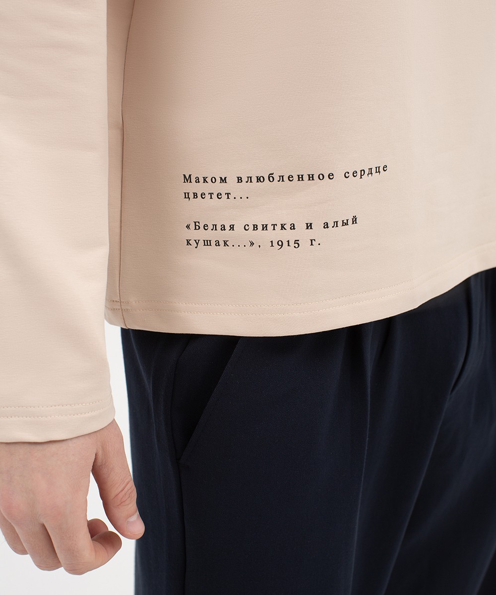 Эта коллекция не просто мерч, это художественный диалог с поэтом, выраженный через тщательно продуманный дизайн, символы и цвета, объединяющие прошлое и настоящее, поэзию и современность.