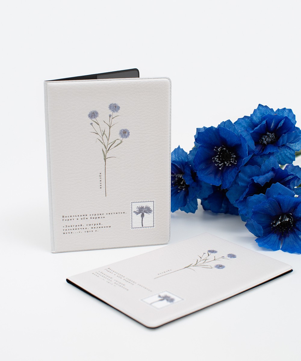 Обложка на паспорт «Цветы Есенина» доступна в принтах «Василёк», «Маки», «Рожь»