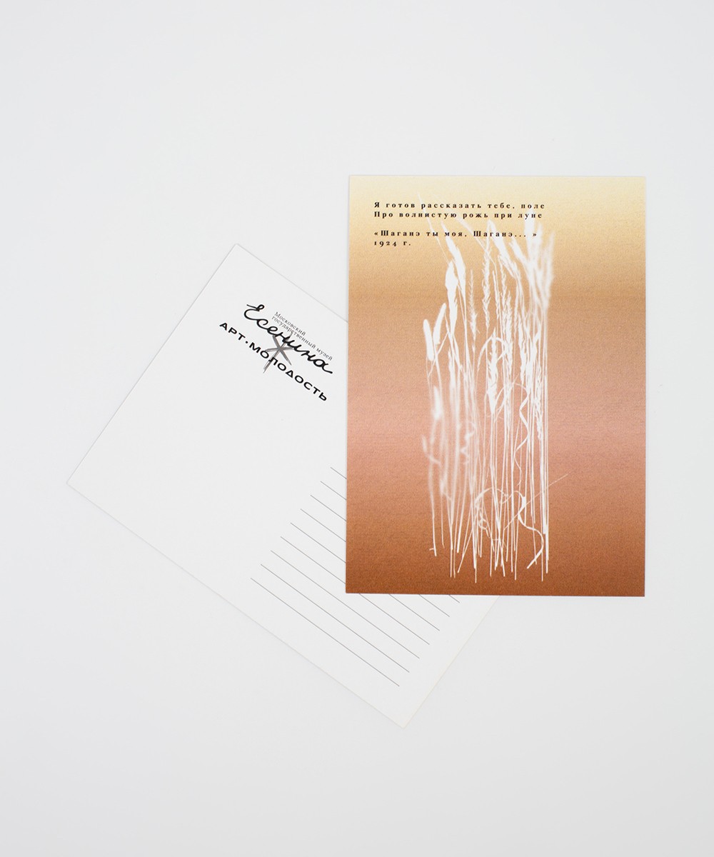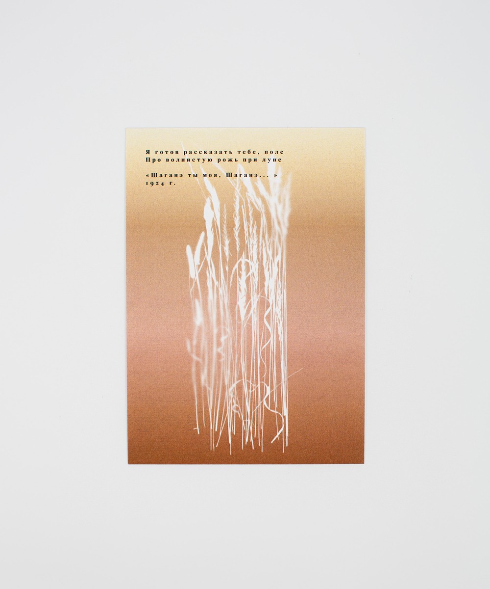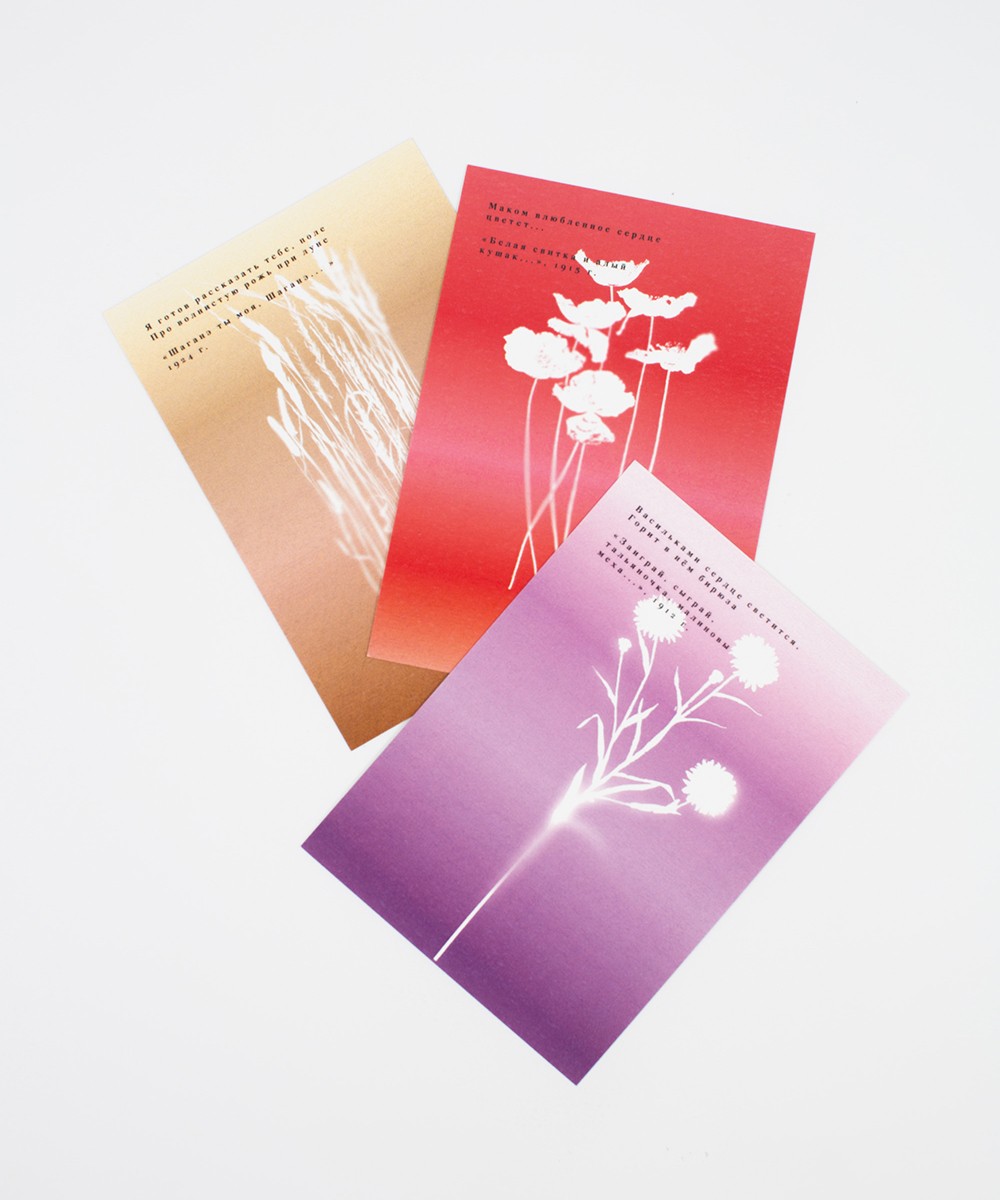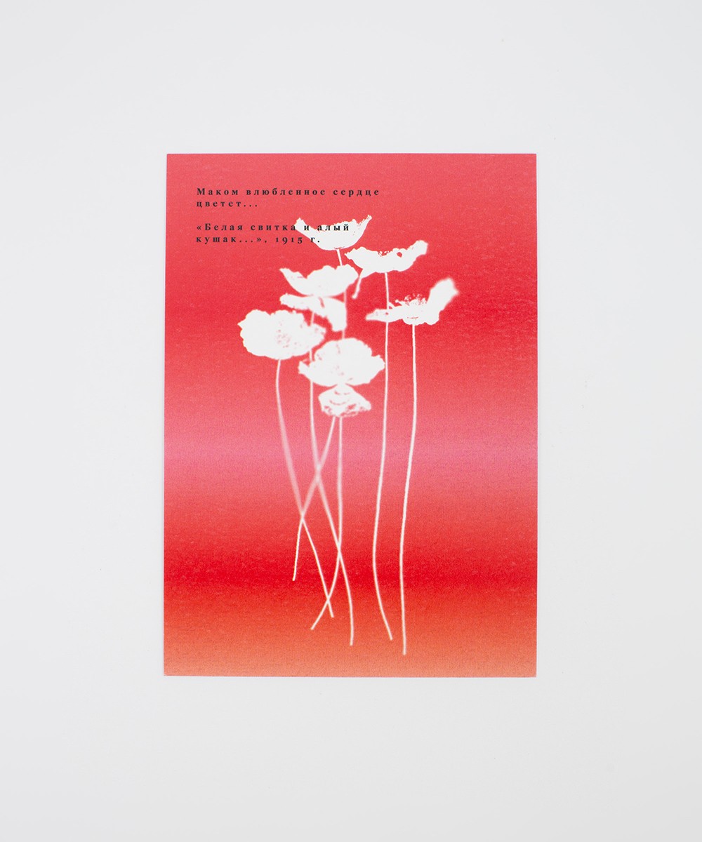 Открытка формата А6, двусторонняя, доступна в принтах «Василёк», «Маки», «Рожь», а также в варианте с негативной печатью.