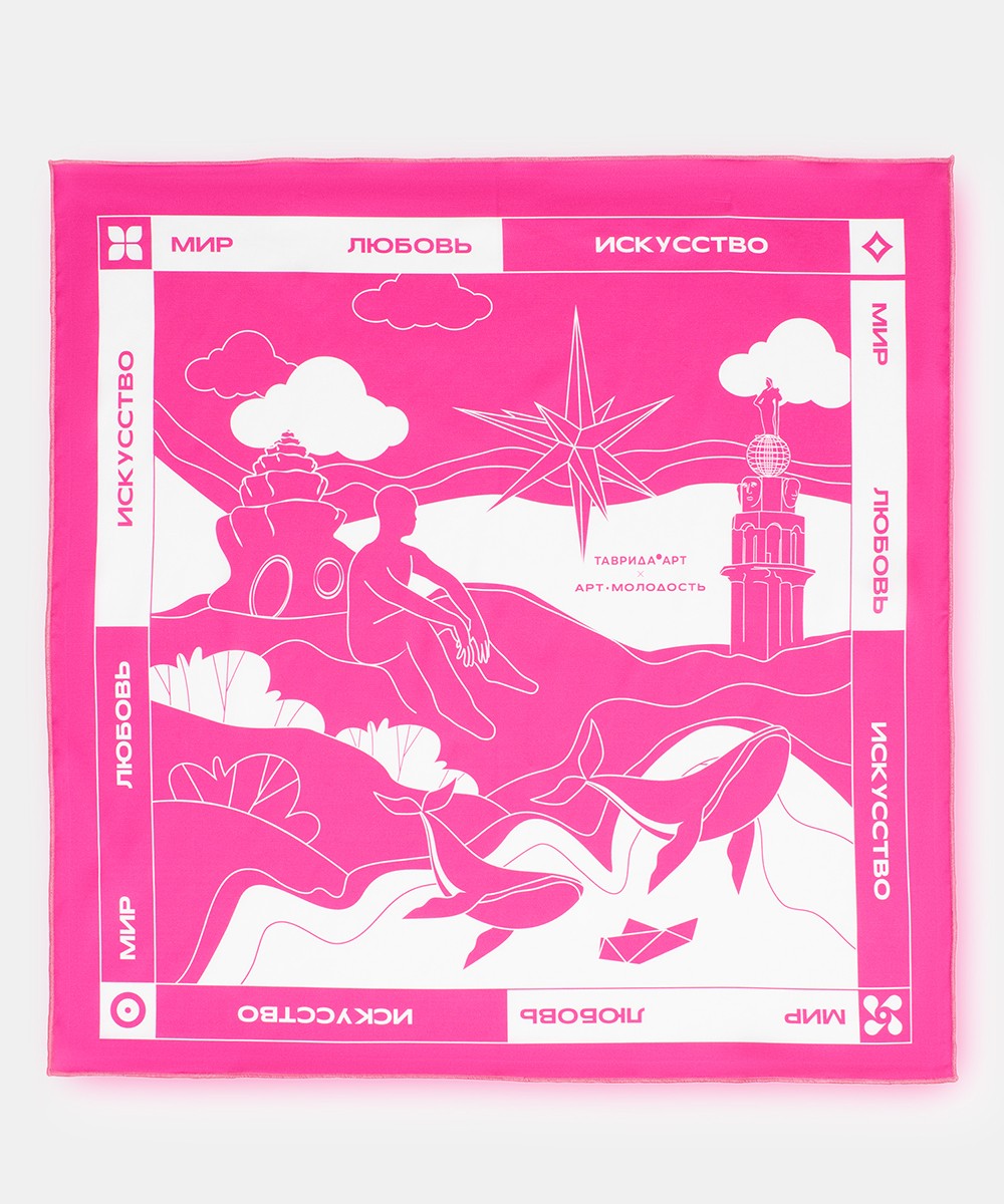 Платок «Мир. Любовь. Искусство», розовый.
