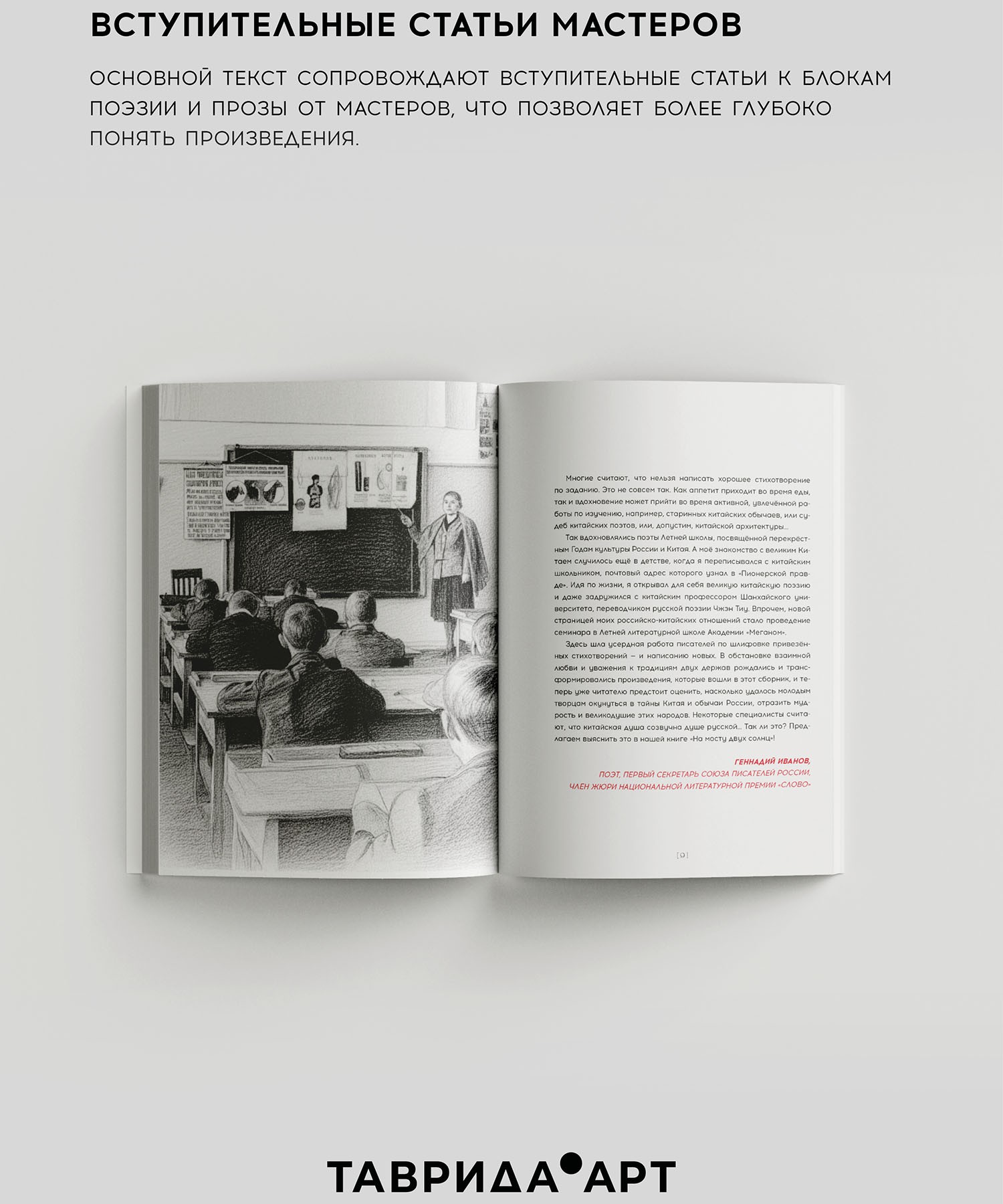 Этот сборник — плод творческого путешествия, предпринятого молодыми поэтами и прозаиками в рамках IX Летней школы Академии «Меганом» арт-кластера «Таврида». Сквозь туман горных вершин Поднебесной и отечественного фольклора авторы проложили свой маршрут, погрузились в мифы, легенды и традиции Китая и России.