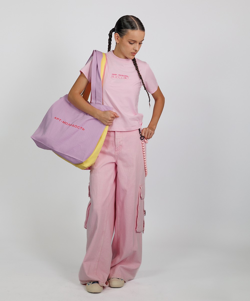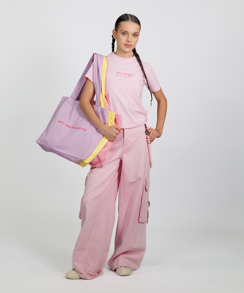 В капсуле вы найдёте футболки с любимыми слоганами «Мир Любовь Искусство», просторные пляжные шопперы и стильные авоськи.