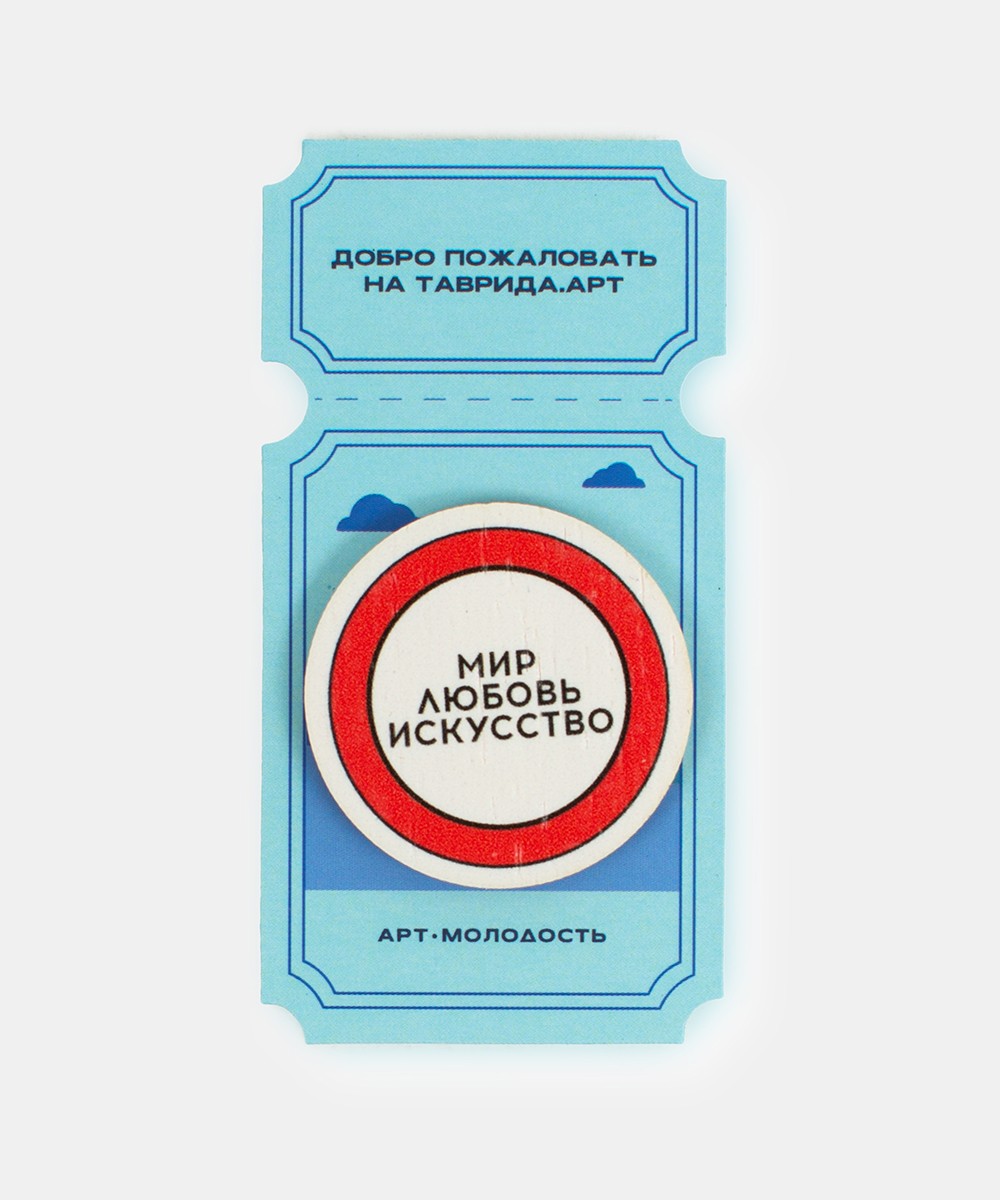 Значок «Мир.Любовь.Искусство» на булавке.