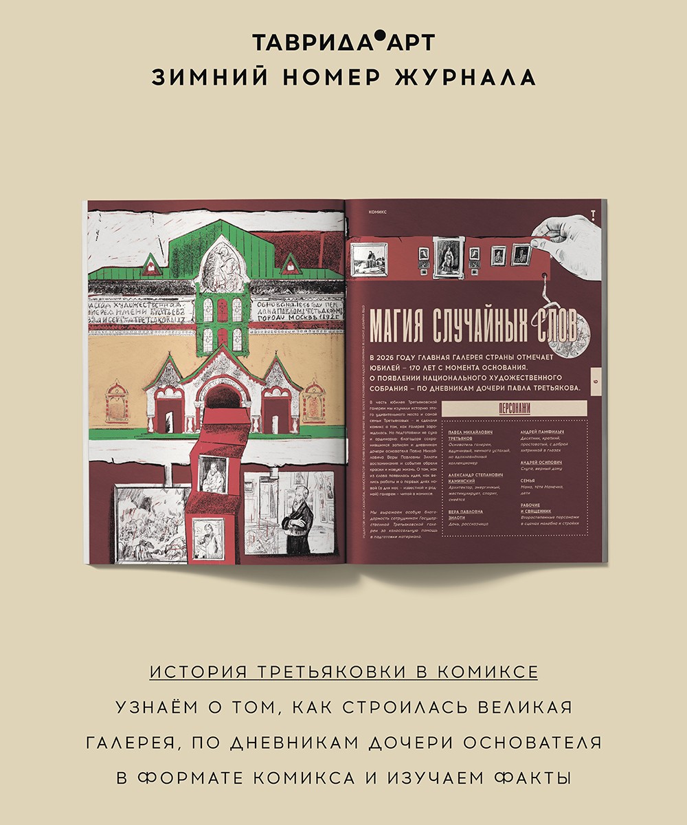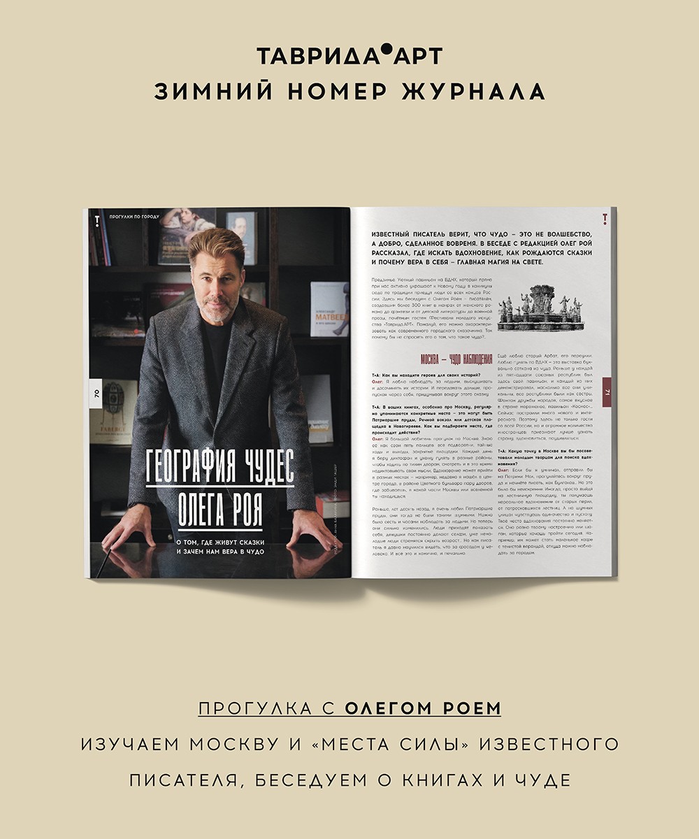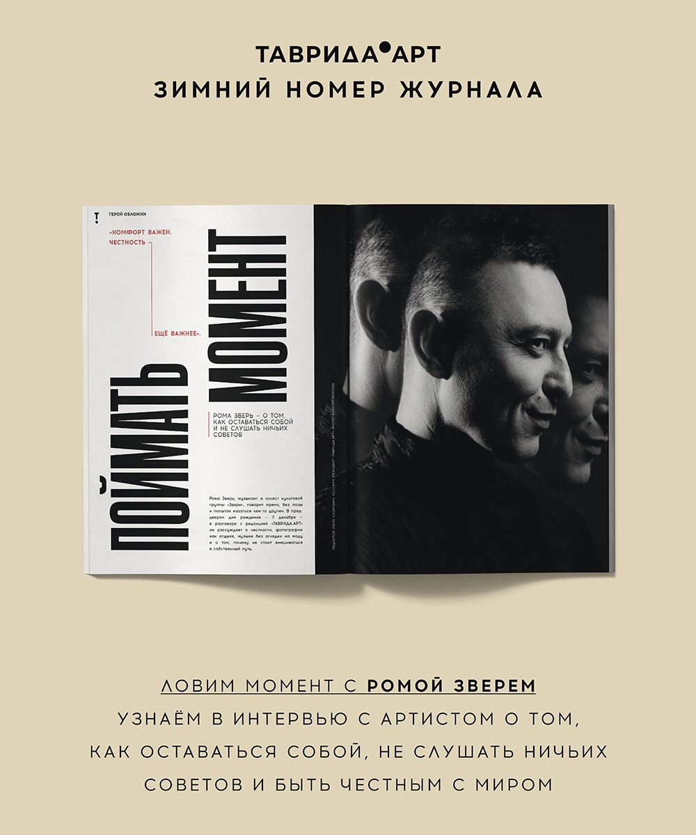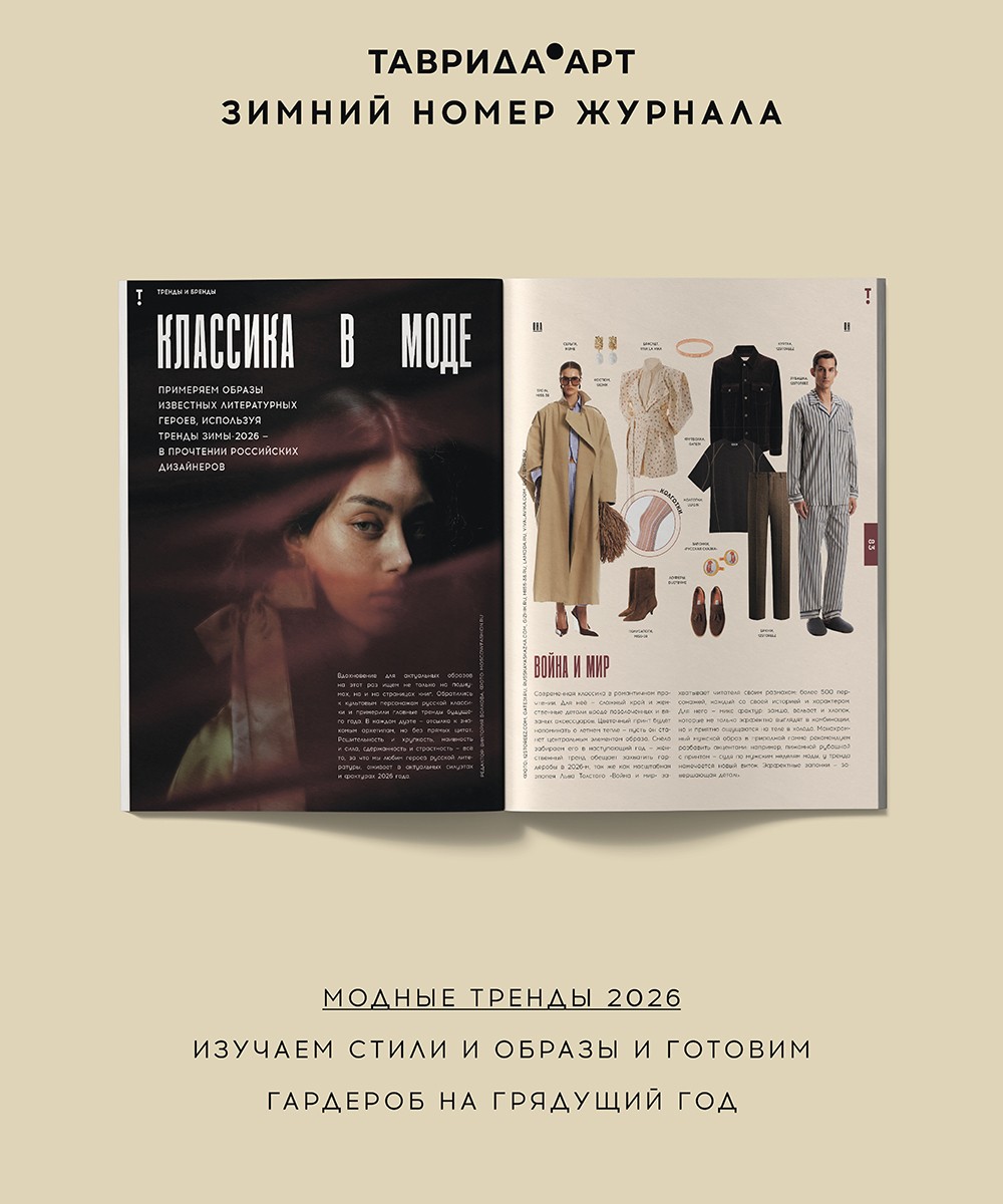 Зимний выпуск журнала «ТАВРИДА.АРТ» погружает в атмосферу волшебной сказки, превращая холодное время года в период света, творчества и праздника. На обложке — Рома Зверь: в большом эксклюзивном интервью он рассуждает о музыке, искусстве быть собой и своём увлечении фотографией. Внутри номера — тёплые пожелания на 2026 год от фигуристки и «ледяной королевы» Камилы Валиевой, путешествие по Москве и «местам силы» с Олегом Роем, а также история молодой артистки лейбла «Таврида» и барда Грель.